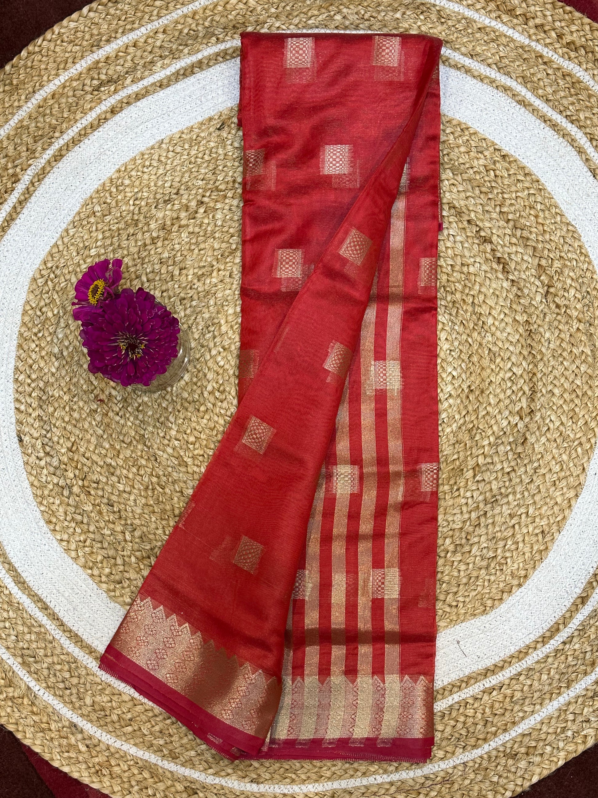 The last photo shows the blouse material and all the sarees Will have a similar blouse material in the same colour as the sari.